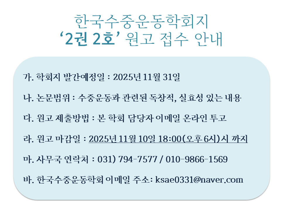 Çѱ¹¼öÁ߿ÇÐȸÁö '2±Ç 2È£' ¿ø°íÁ¢¼ö ¾È³»